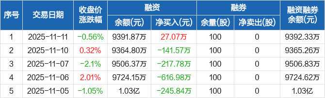 众辰科技:融资净买入27.07万元,融资余额9391.87万元(11-11)