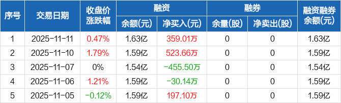 天洋新材:融资净买入359.01万元,融资余额1.63亿元(11-11)