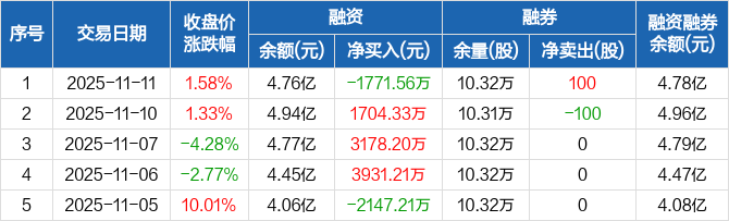浪潮软件:融资净偿还1771.56万元,融资余额4.76亿元(11-11)