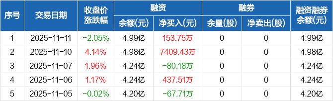 瑞联新材:融资净买入153.75万元,融资余额4.99亿元(11-11)