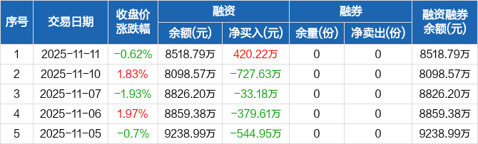 港股通科技30ETF:融资净买入420.22万元,融资余额8518.79万元(11-11)