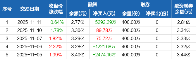 电池ETF:融资净偿还5292.29万元,融资余额2.77亿元(11-11)