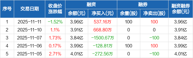 永贵电器:融资净买入537.16万元,融资余额3.96亿元(11-11)