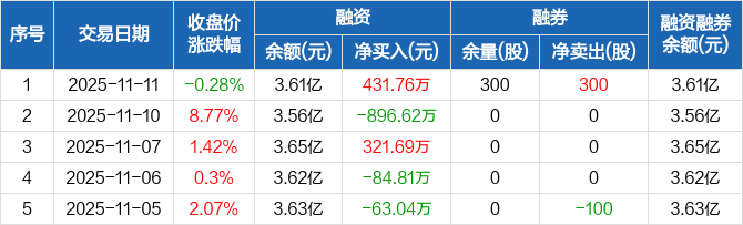 海达股份:融资净买入431.76万元,融资余额3.61亿元(11-11)