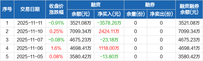 A500ETF易方达:融资净偿还3578.26万元,融资余额3521.08万元(11-11)