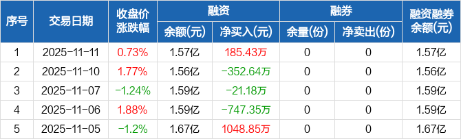 纳斯达克ETF:融资净买入185.43万元,融资余额1.57亿元(11-11)