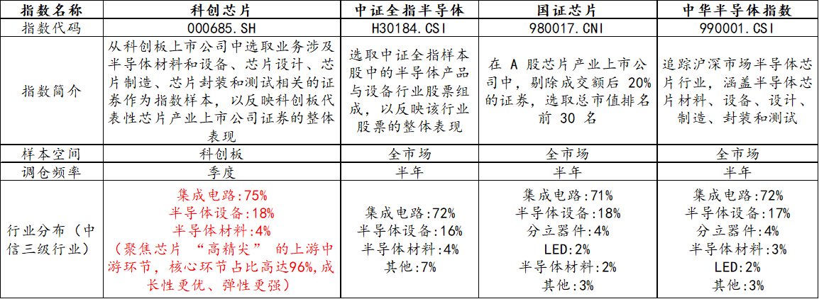 从调仓频率来看,科创芯片指数选取季度调仓,能更敏捷地反映芯片产业链发展趋势。