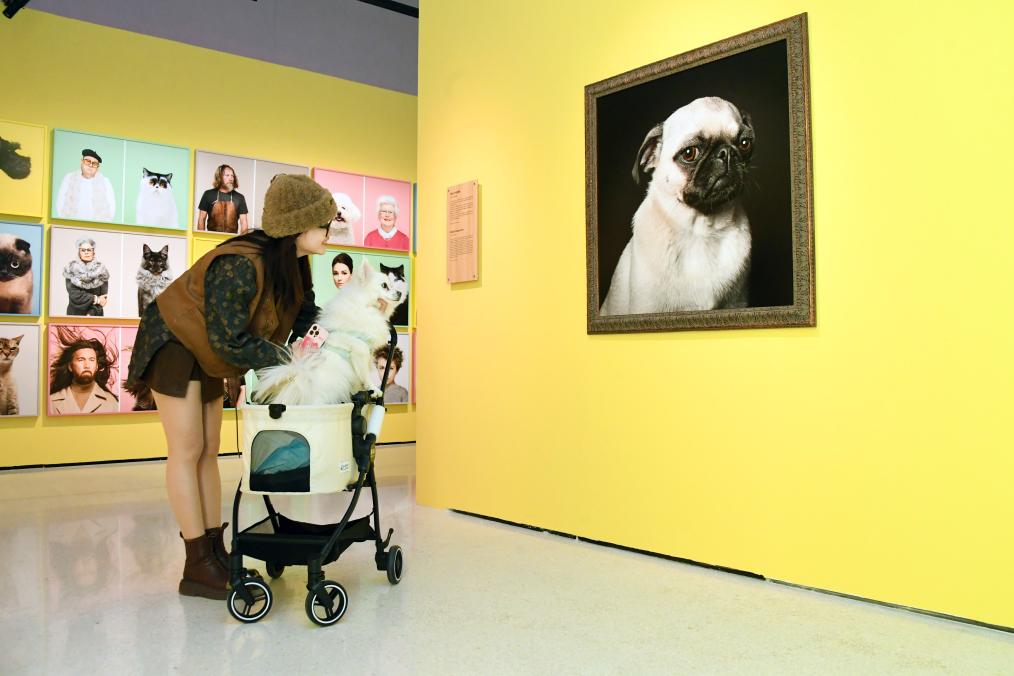 3月30日,观众在北京时代美术馆参观《宠物总动员》摄影展。新华社记者任超摄