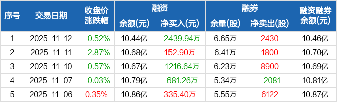 正帆科技:融资净偿还2439.94万元,融资余额10.44亿元(11-12)