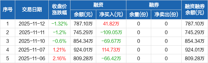 稀有金属ETF:融资净买入41.82万元,融资余额787.1万元(11-12)