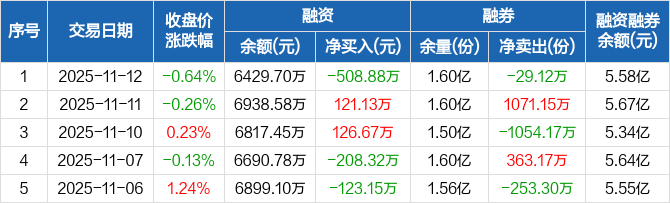 中证1000ETF:融资净偿还508.88万元,融资余额6429.7万元(11-12)