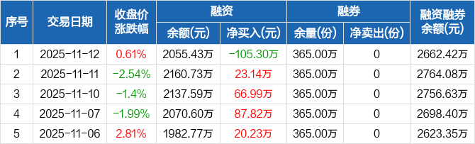 5GETF:融资净偿还105.3万元,融资余额2055.43万元(11-12)