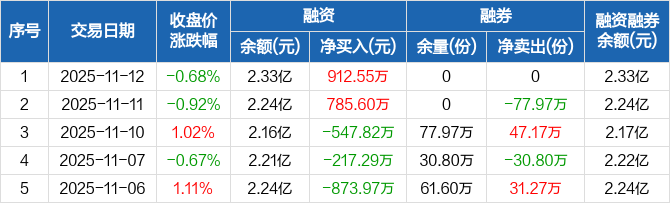 券商ETF:融资净买入912.55万元,融资余额2.33亿元(11-12)