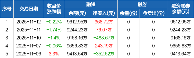 双创ETF:融资净买入368.72万元,融资余额9612.95万元(11-12)