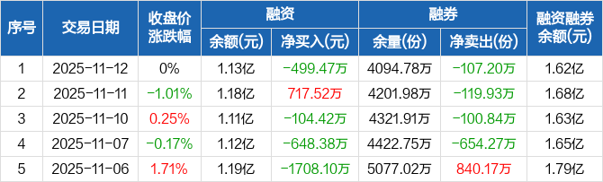 中证A500ETF:融资净偿还499.47万元,融资余额1.13亿元(11-12)