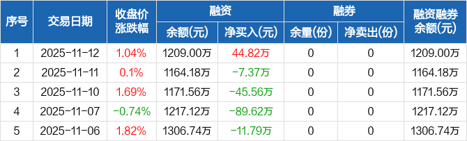 恒生国企ETF:融资净买入44.82万元,融资余额1209万元(11-12)