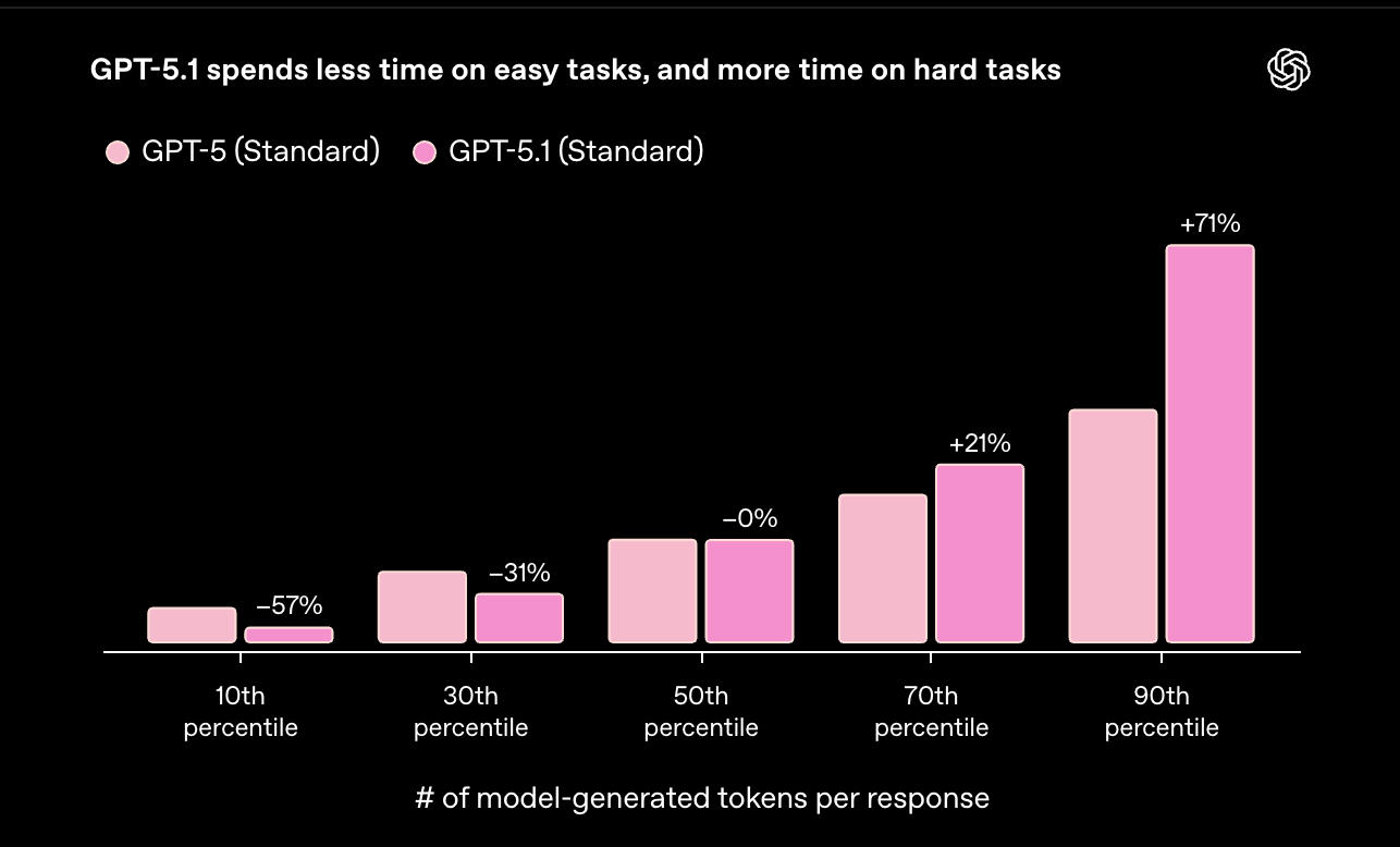 主打专业推理的GPT-5.1 Thinking则实现了思考节奏的智能调节,简单任务响应速度较前代提升两倍,复杂问题则延长思考周期输出详尽答案,且大幅减少专业术语与晦涩表达,非技术人员也能轻松理解复杂概念。