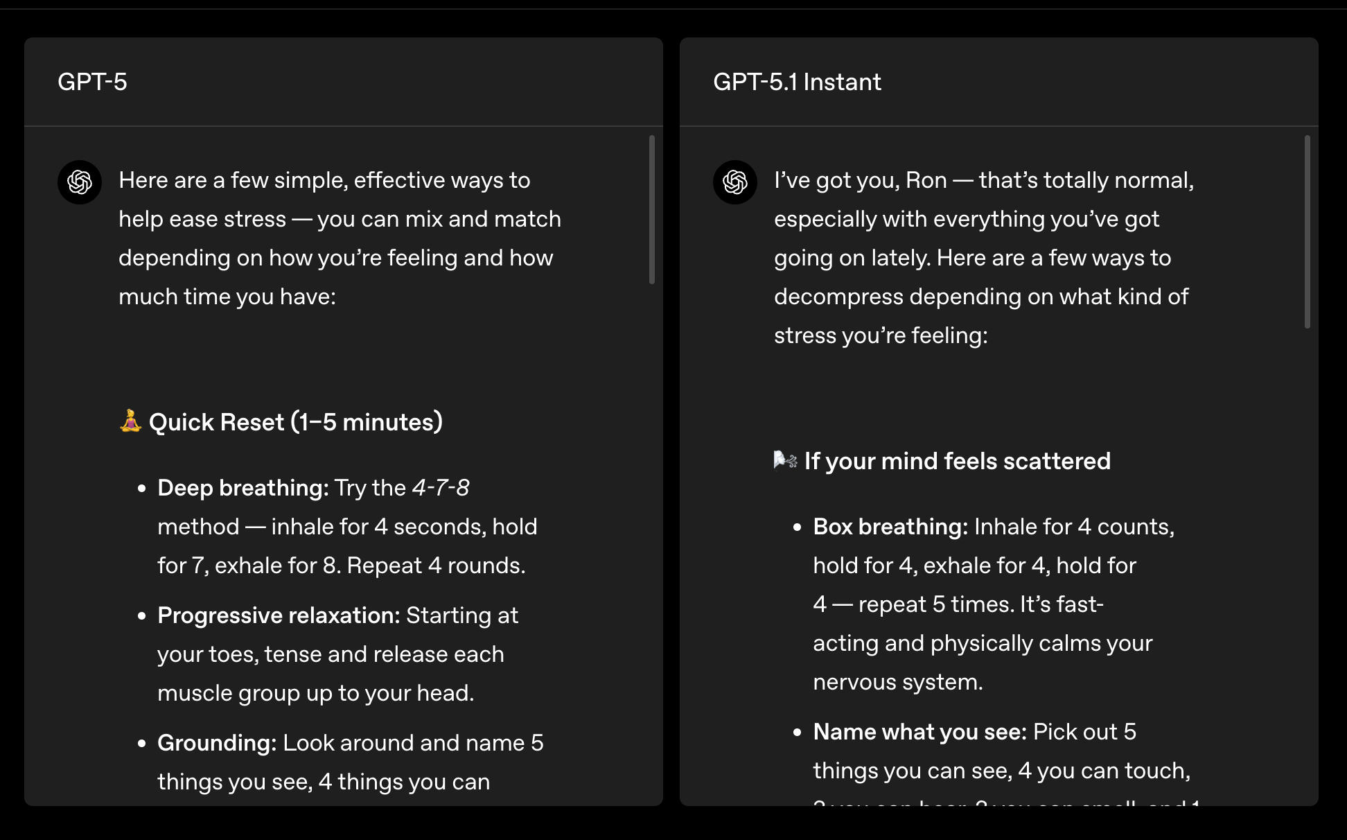 根据官方公告,GPT-5.1系列包含GPT-5.1 Instant和GPT-5.1 Thinking两大核心模型,同步推出GPT-5.1 Auto智能功能,即日起向付费用户逐步推送,免费用户将在付费用户覆盖完成后跟进,API开发者则可在本周晚些时候接入GPT-5.1。为避免用户适应困扰,OpenAI还提供了 “后悔药”,付费用户3个月内可在设置中切换回旧版GPT-5,确保平稳过渡。