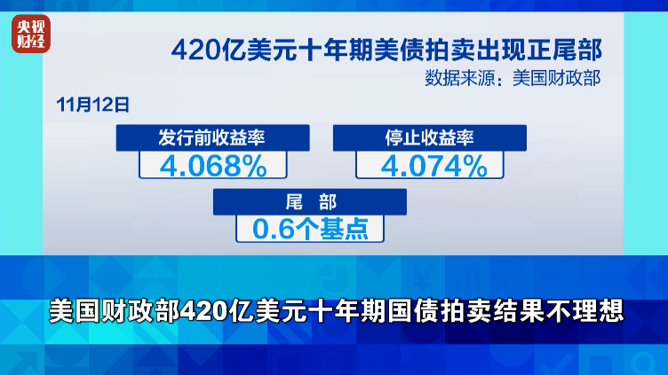 美国财政部420亿美元十年期国债拍卖结果不理想