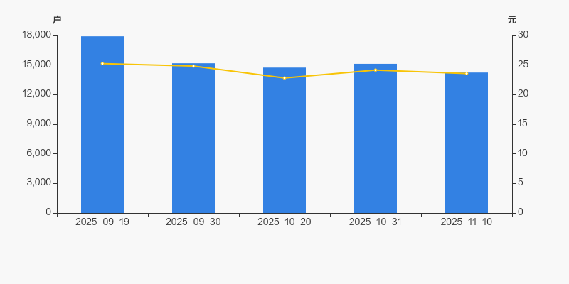 2025年9月19日至今,公司股东户数显著下降,区间跌幅为20.51%。2025年9月19日至2025年11月10日区间股价下降6.61%。