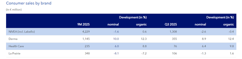 此外,主要包括汉莎(Hansaplast)与易理妥(Elastoplast)的医疗健康品牌,在前三季度实现了8.8%的有机增长,销售额约2.35亿欧元,主要由创口护理品类驱动。
