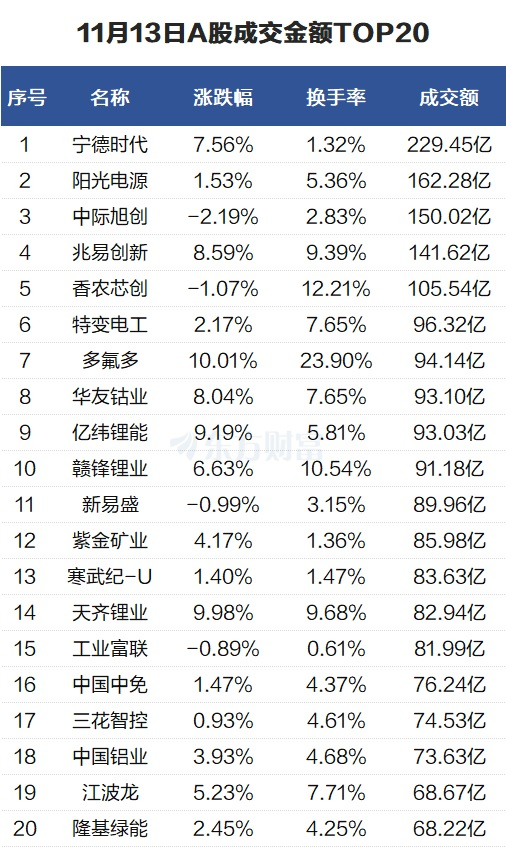 活跃个股:宁德时代成交229亿元 建发致新换手率51%
