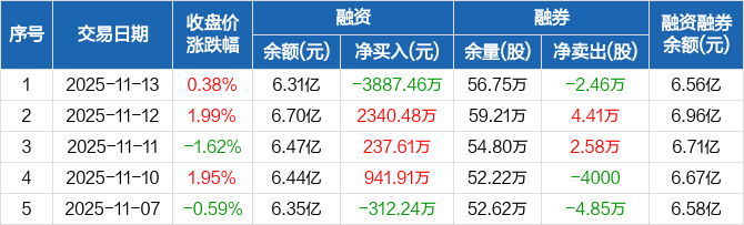 中国人寿:融资净偿还3887.46万元,融资余额6.31亿元(11-13)