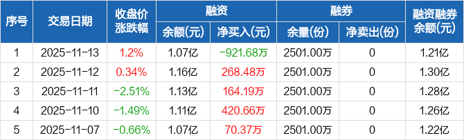 创业板成长ETF:融资净偿还921.68万元,融资余额1.07亿元(11-13)