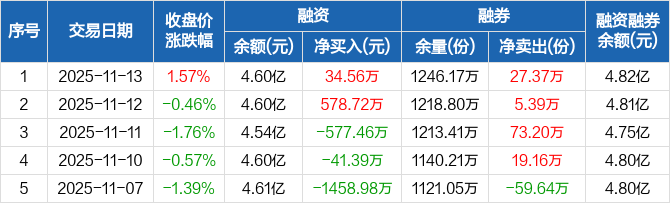 芯片ETF:融资净买入34.56万元,融资余额4.6亿元(11-13)