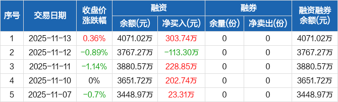 航空航天ETF:融资净买入303.74万元,融资余额4071.02万元(11-13)