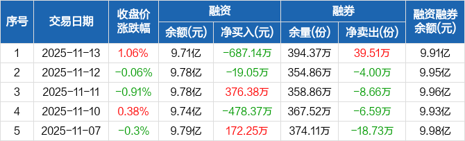 沪深300ETF:融资净偿还687.14万元,融资余额9.71亿元(11-13)
