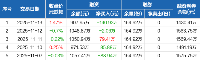 中证1000ETF易方达:融资净偿还140.93万元,融资余额907.95万元(11-13)