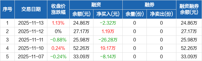 中证A500ETF指数基金:融资净偿还2.32万元,融资余额24.86万元(11-13)