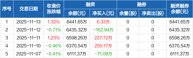宏鑫科技:融资净买入6.33万元,融资余额6441.65万元(11-13)