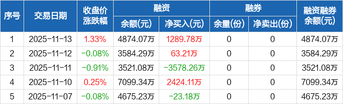 A500ETF易方达:融资净买入1289.78万元,融资余额4874.07万元(11-13)