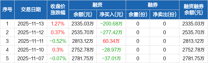 中证A50指数ETF:融资净偿还200.68万元,融资余额2335.03万元(11-13)