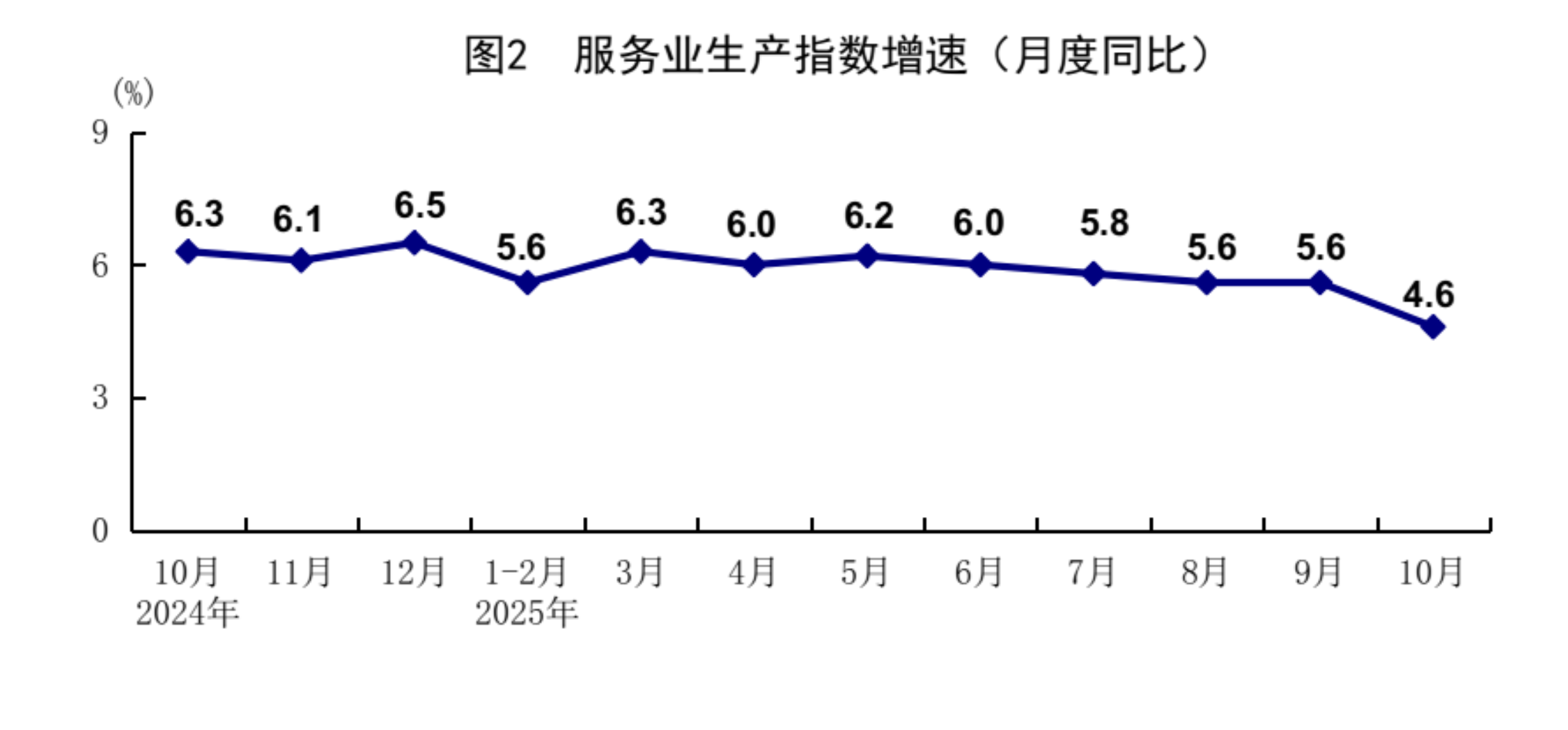 10月份,全国服务业生产指数同比增长4.6%。分行业看,信息传输、软件和信息技术服务业,租赁和商务服务业,金融业生产指数同比分别增长13.0%、8.2%、5.6%,分别快于服务业生产指数8.4、3.6、1.0个百分点。1-10月份,全国服务业生产指数同比增长5.7%。1-9月份,规模以上服务业企业营业收入同比增长7.6%。10月份,服务业商务活动指数为50.2%,服务业业务活动预期指数为56.1%。其中,铁路运输、航空运输、邮政、住宿、文化体育娱乐等行业商务活动指数位于60.0%及以上高位景气区间。