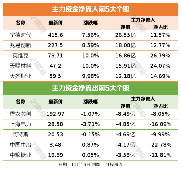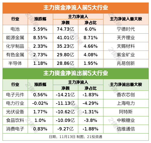 11月13日,市场全天震荡拉升,三大指数低开高走,沪指刷新十年新高,创业板指涨超2%。截至收盘,沪指涨0.73%,深成指涨1.78%,创业板指涨2.55%。沪深两市成交额2.04万亿,较上一个交易日放量969亿。