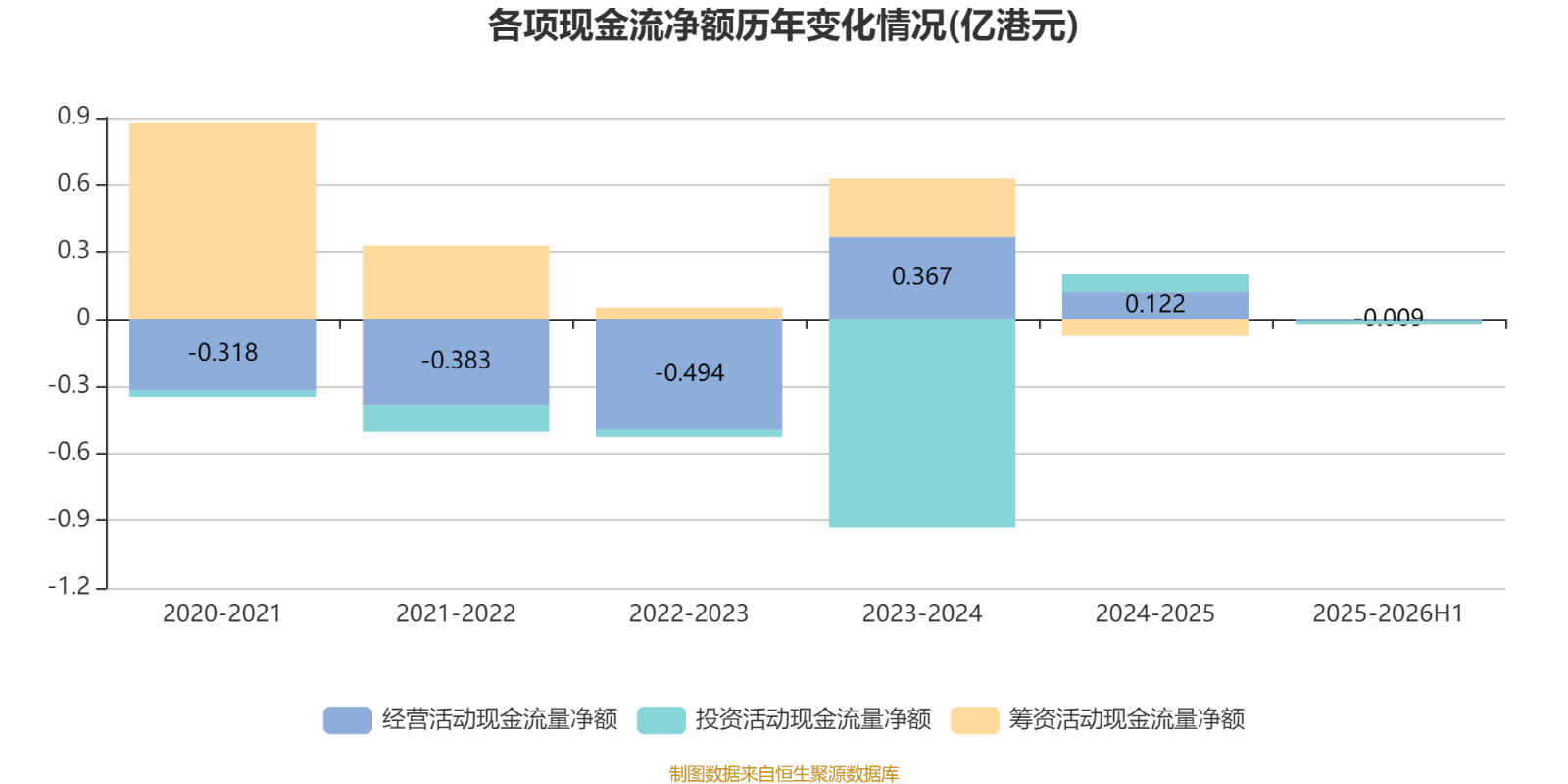报告期内,公司经营活动现金流净额为-89.3万港元;筹资活动现金流净额-14.4万港元;投资活动现金流净额-163.6万港元。