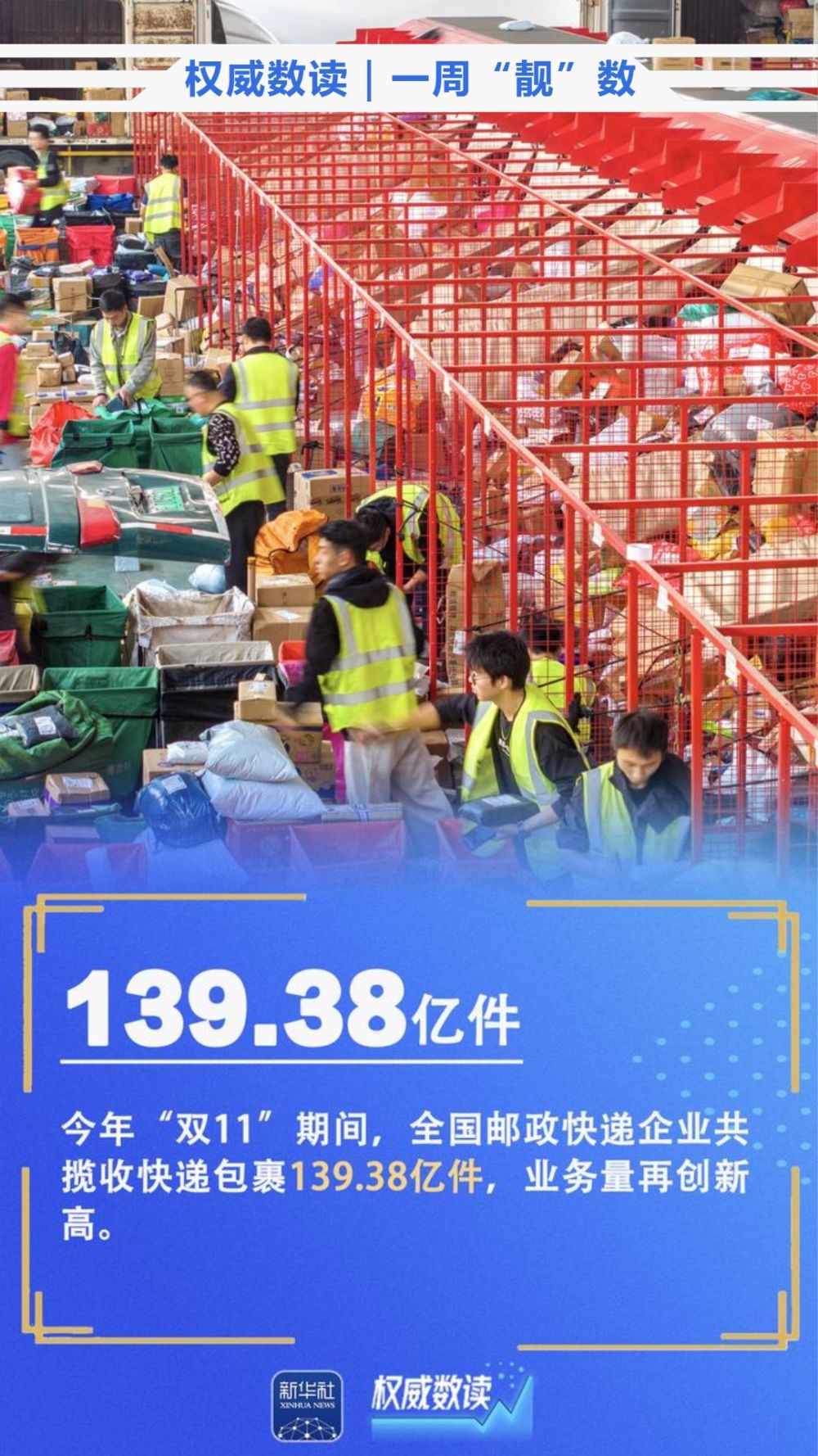 10月份,全国规上工业增加值同比增长4.9%;今年“双11”期间,全国邮政快递企业共揽收快递包裹139.38亿件,业务量再创新高;截至11月12日,全国各类粮食经营主体累计收购秋粮超过1亿吨……本周这些数据,最值得关注!