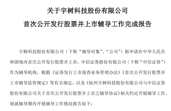 2025年7月7日,中信证券与宇树科技签署了辅导协议,并按照《首次公开发行股票并上市辅导监管规定》等相关规定及双方约定开展辅导工作。7月8日,中信证券与宇树科技通过公开发行辅导监管系统提交了辅导备案登记材料;7月18日,中国证监会网上办事服务平台对辅导备案报告进行了公示。