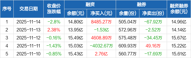 创业板ETF:融资净买入8485.27万元,两市排名第20(11-14)