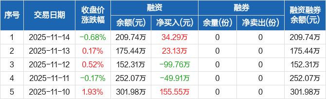 医疗器械指数ETF:融资净买入34.29万元,融资余额209.74万元(11-14)