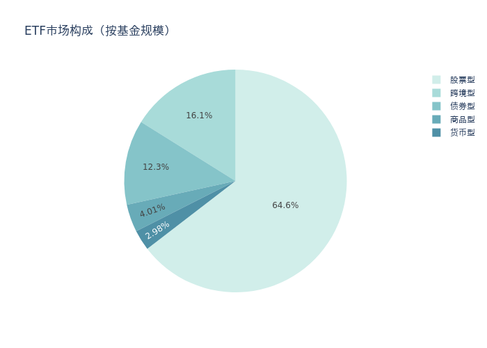 基金规模方面,上周ETF市场总规模达到57299.22亿元,较前一周减少29.68亿元。其中,股票型ETF为36993.5亿元,债券型ETF为7062.92亿元,货币型ETF为1707.07亿元,商品型ETF为2299.87亿元,跨境型ETF为9235.86亿元。