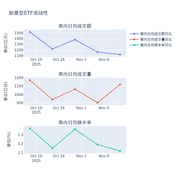 流动性方面,上周股票型ETF市场日均成交额减少3.8%,日均成交量增加24.1%,换手率减少0.07%。