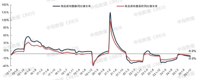11月14日,国家统计局发布《2025年1-10月份全国房地产市场基本情况》,数据显示,1-10月,全国新建商品房销售面积同比下降6.8%,销售额同比下降9.6%。11月16日,中指研究院指数研究部总经理曹晶晶在接受海报新闻记者采访时表示,短期房地产政策预计将继续聚焦推动市场止跌回稳。随着年末房企进入业绩冲刺阶段,重点城市供应或有所改善,有望对市场形成一定支撑。