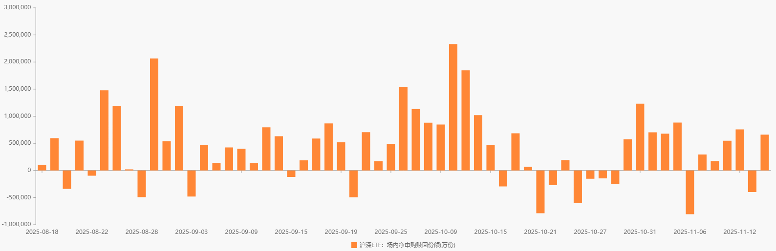 上周五(11月14日),东方财富Choice数据显示,场内股票型ETF净申购66.15亿份;其中,沪市股票型ETF净申购41.07亿份,深市股票型ETF净申购25.08亿份。以最新净值计,上周五市场净申购89.57亿元。