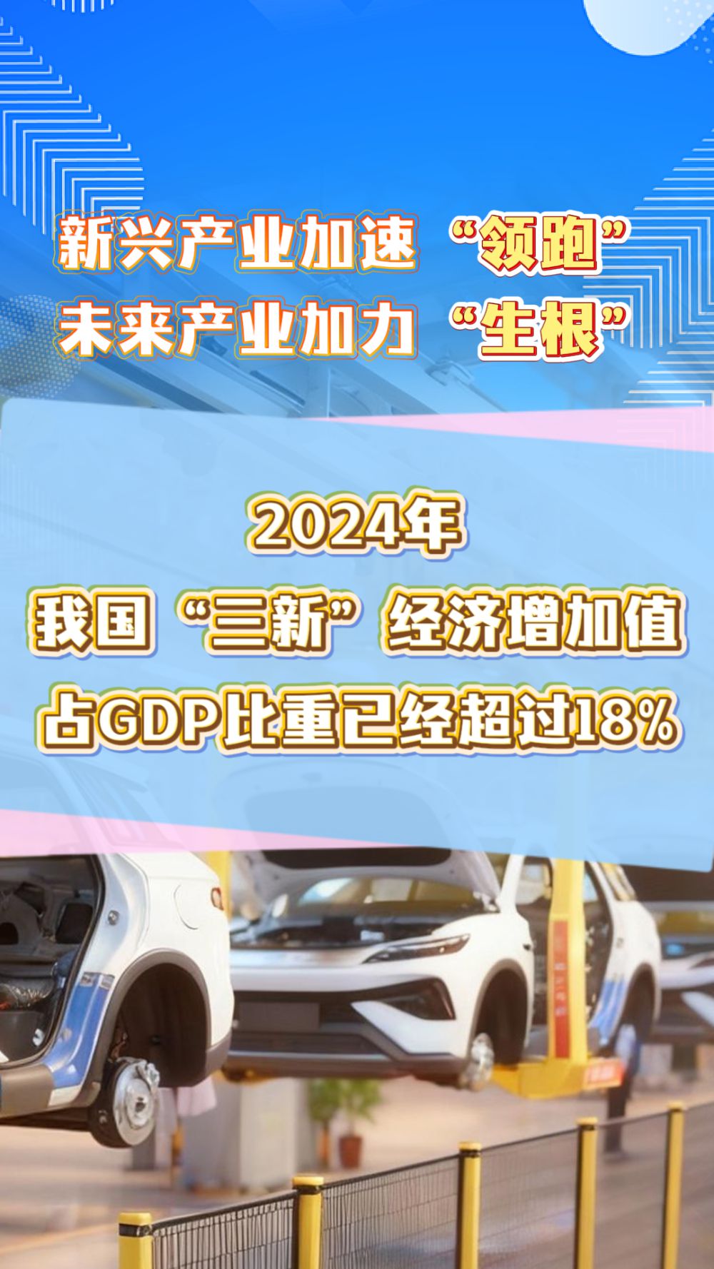 新兴产业加速“领跑”,未来产业加力“生根”。2024年,我国“三新”经济增加值占GDP比重已经超过18%。