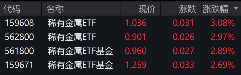 稀有金属概念股全天走强,稀有金属ETF涨约3%