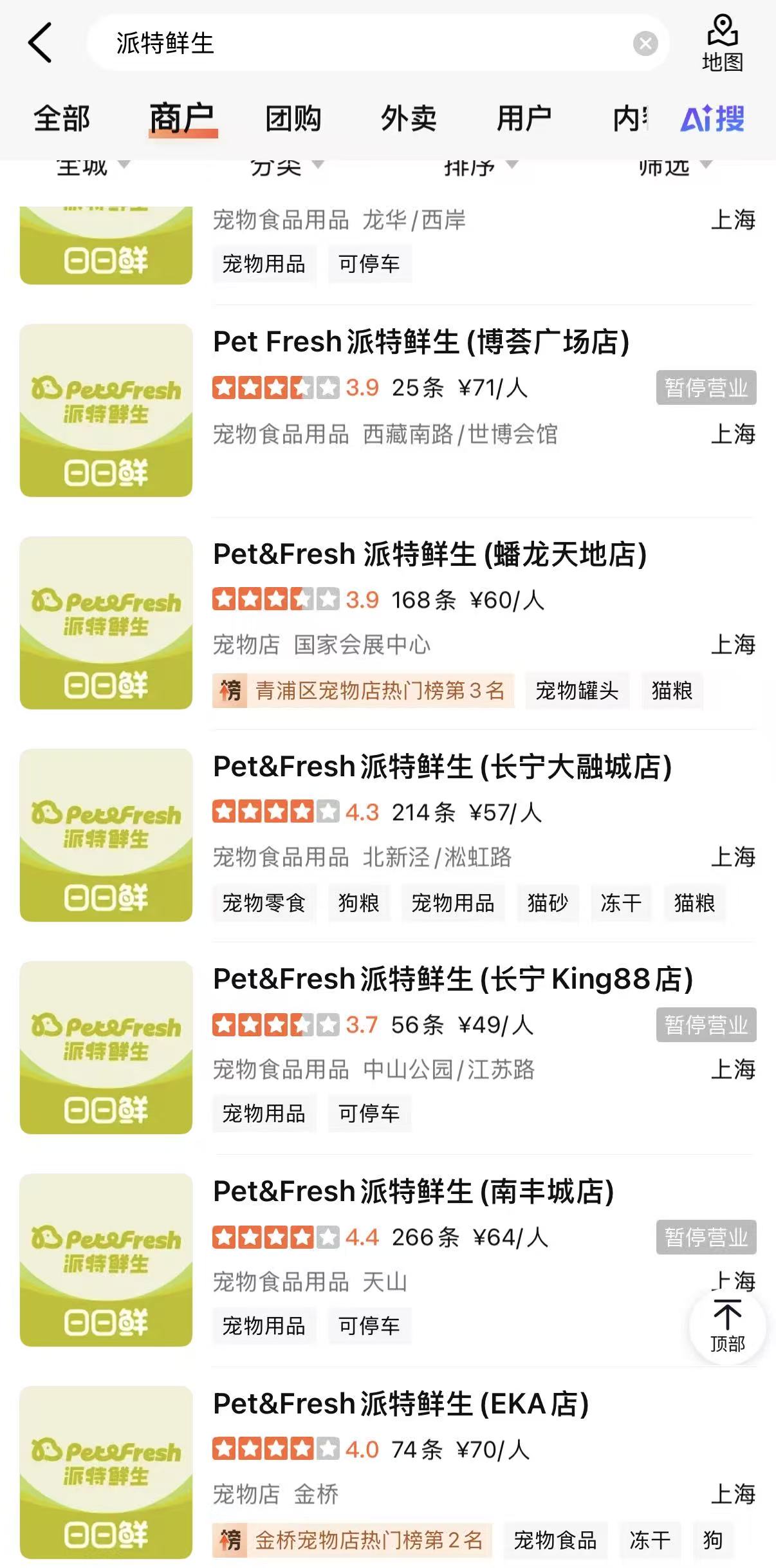 近日,盒马创始人侯毅创立的宠物鲜食品牌“派特鲜生”多家门店关闭引发关注。大众点评App显示,派特鲜生开设的18家门店中,有7家显示“暂停营业”或“歇业关闭”。